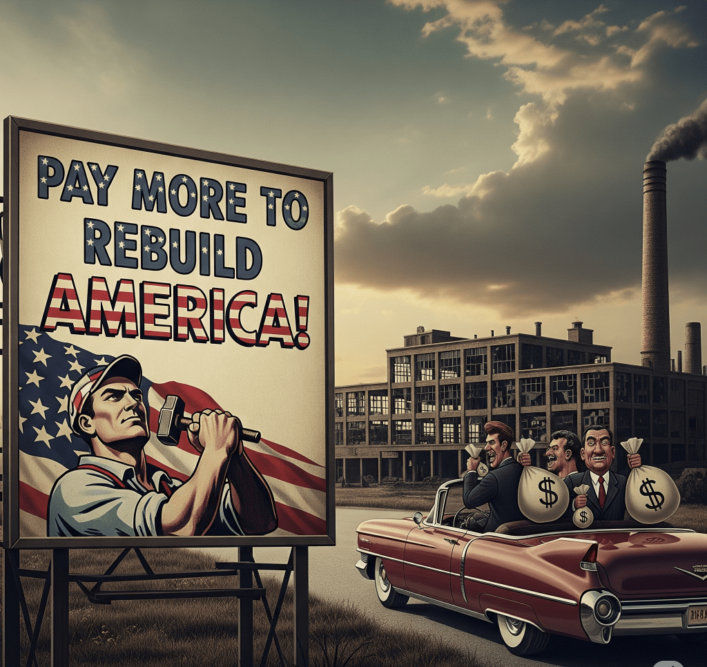 The “pay more to rebuild America” argument is like forcing a Little League team to buy $500 bats from the coach’s brother—while he pockets $450 per sale and tells the kids it’ll make them “tougher.”